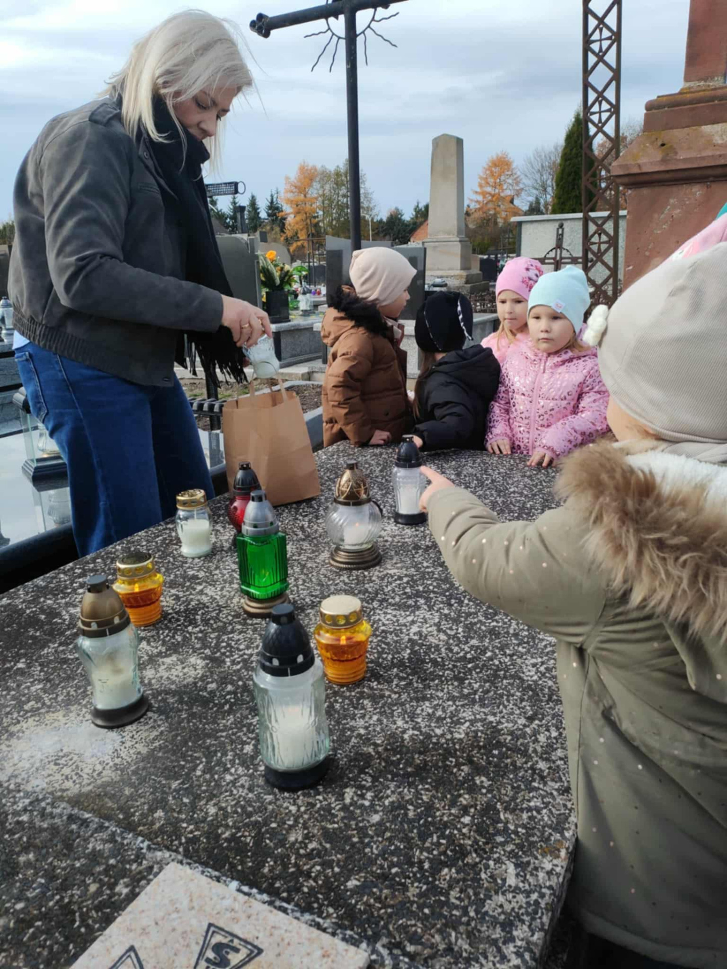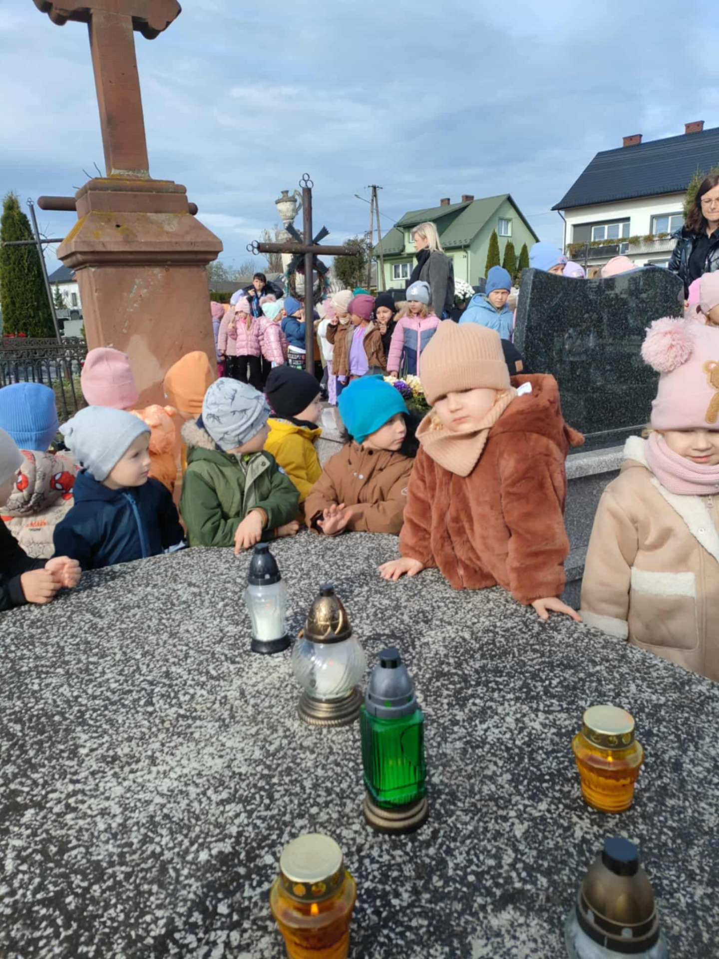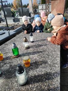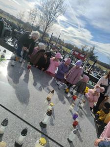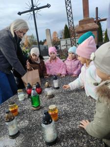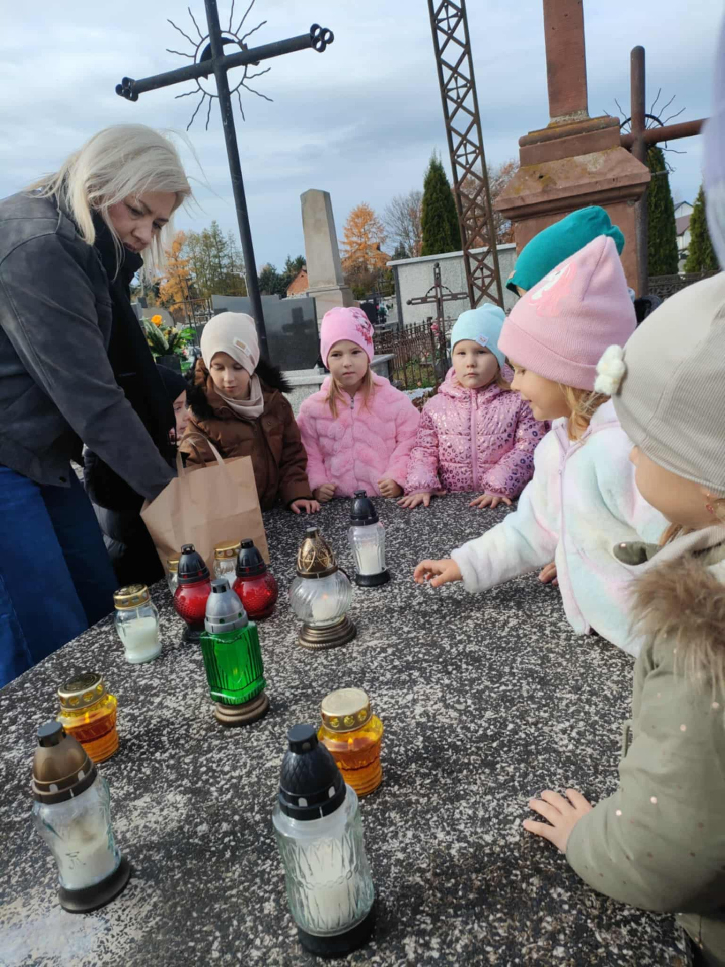 W dniu 30 października 2025 roku przedszkolaki wraz z wychowawczyniami wybrały się na cmentarz, aby uczcić pamięć zmarłych.