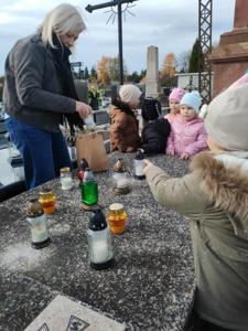 Spacer alejkami cmentarza był dla dzieci ogromnym przeżyciem, szły skupione i bardzo zaciekawione. To była jedna z ważniejszych lekcji wychowania rodzinnego, obywatelskiego i patriotycznego, która z pewnością pozostanie w pamięci dzieci.