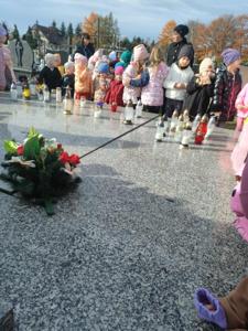 Podczas pobytu na cmentarzu przedszkolaki mogły w ciszy i zadumie posłuchać opowieści na temat przeszłości naszej ojczyzny, zapalić znicze na Grobie Żołnierzy i tym samym oddać hołd poległym, którzy walczyli w obronie naszej ojczyzny. Wychowankowie dowiedzieli się także, jak należy zachowywać się na cmentarzu, by nie zakłócać spokoju zmarłych i osób odwiedzających to miejsce.