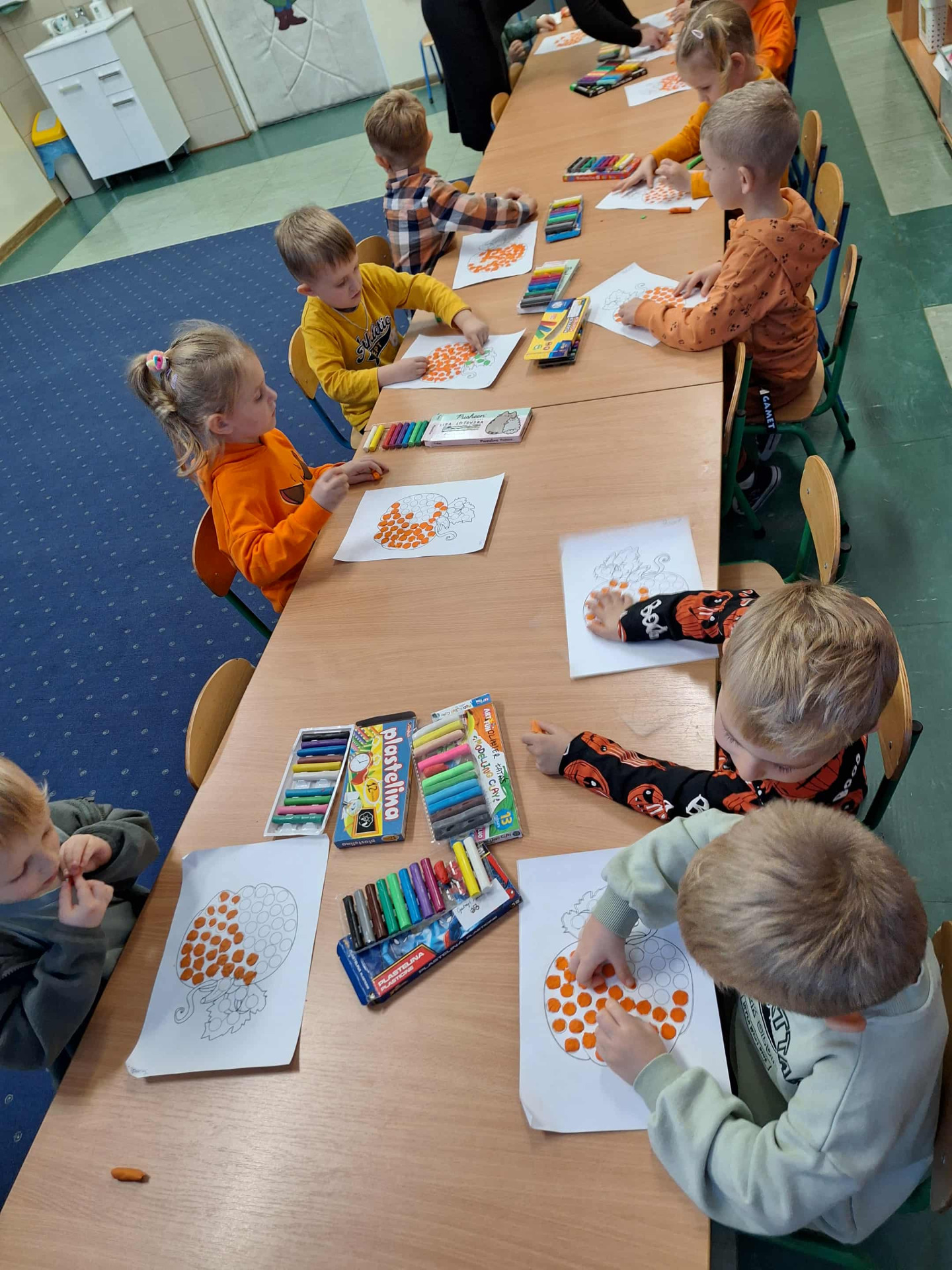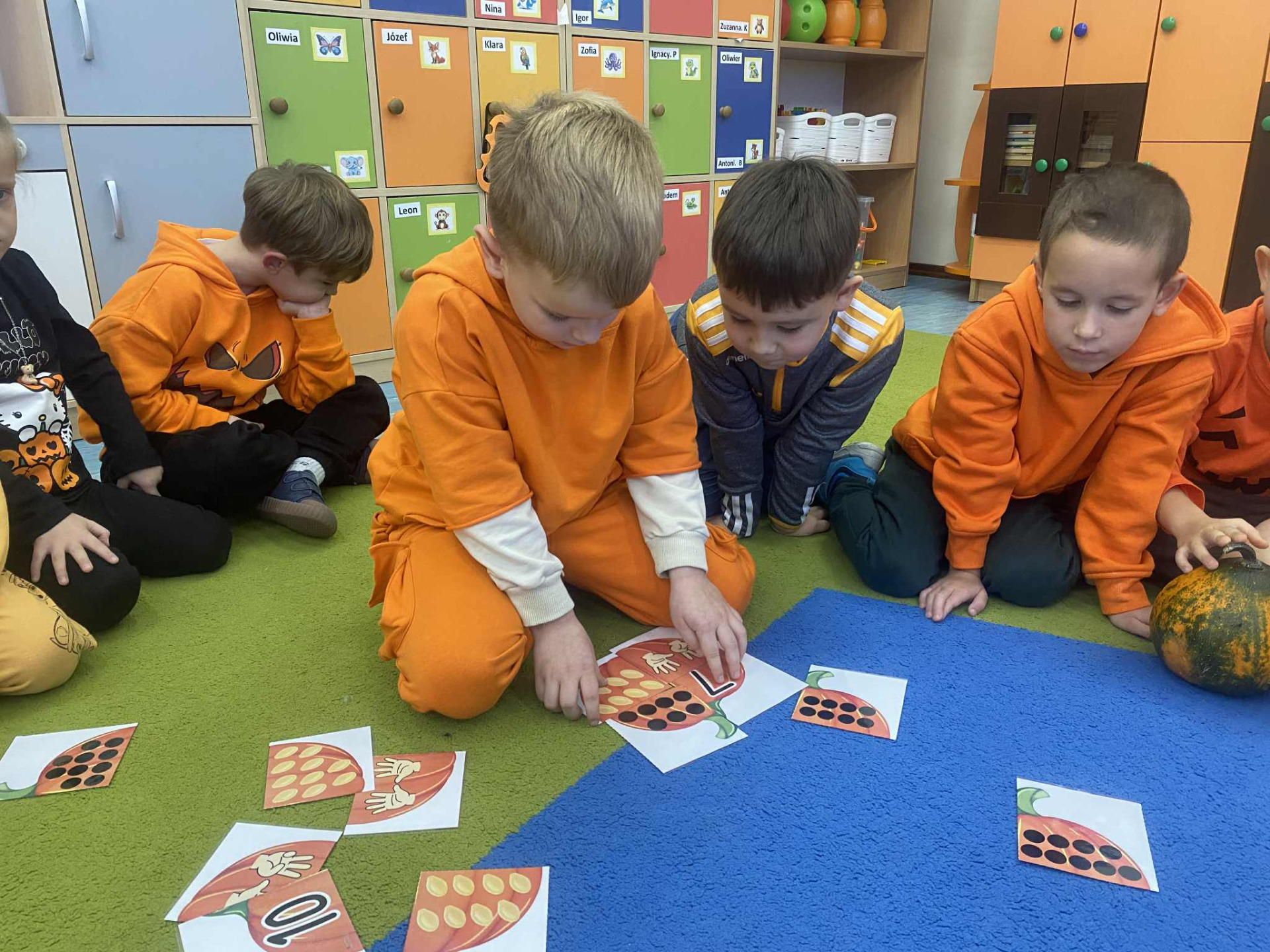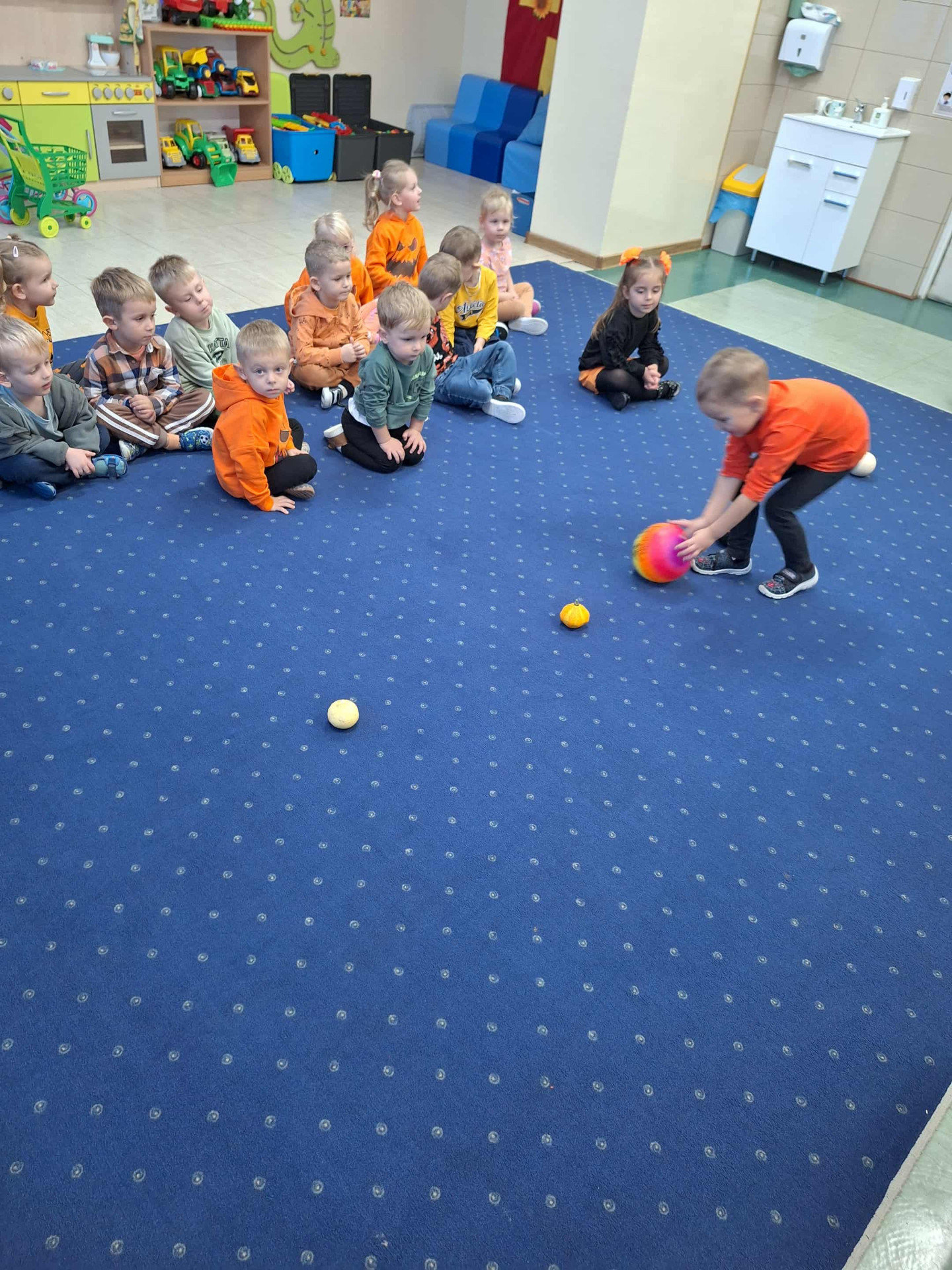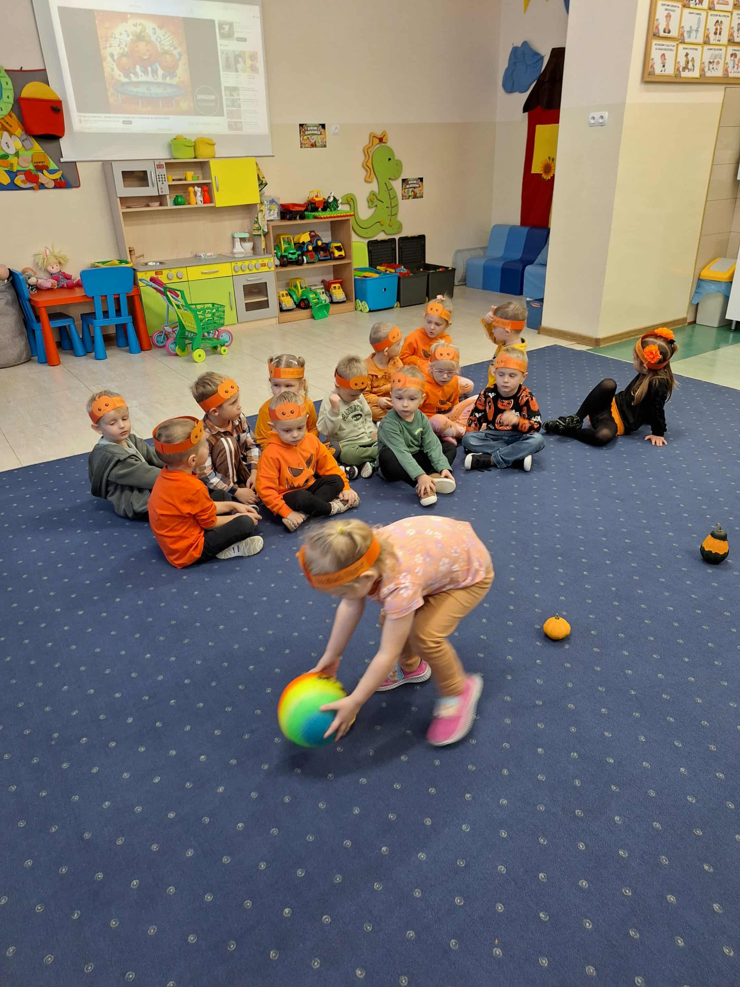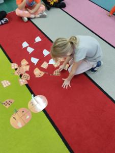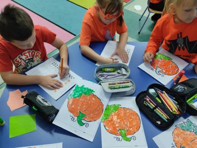 Na dzieci czekało wiele ciekawych zabaw i konkurencji, takich jak dyniowe kręgle, slalom dyniowy, dyniowe zawody, skoki przez dynię czy ziarnko do ziarnka. Nie zabrakło również twórczej pracy – mali artyści wykonali piękne, pomysłowe prace plastyczne inspirowane dynią.