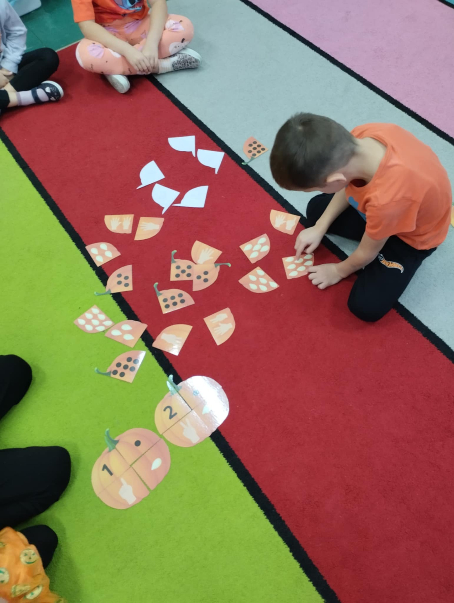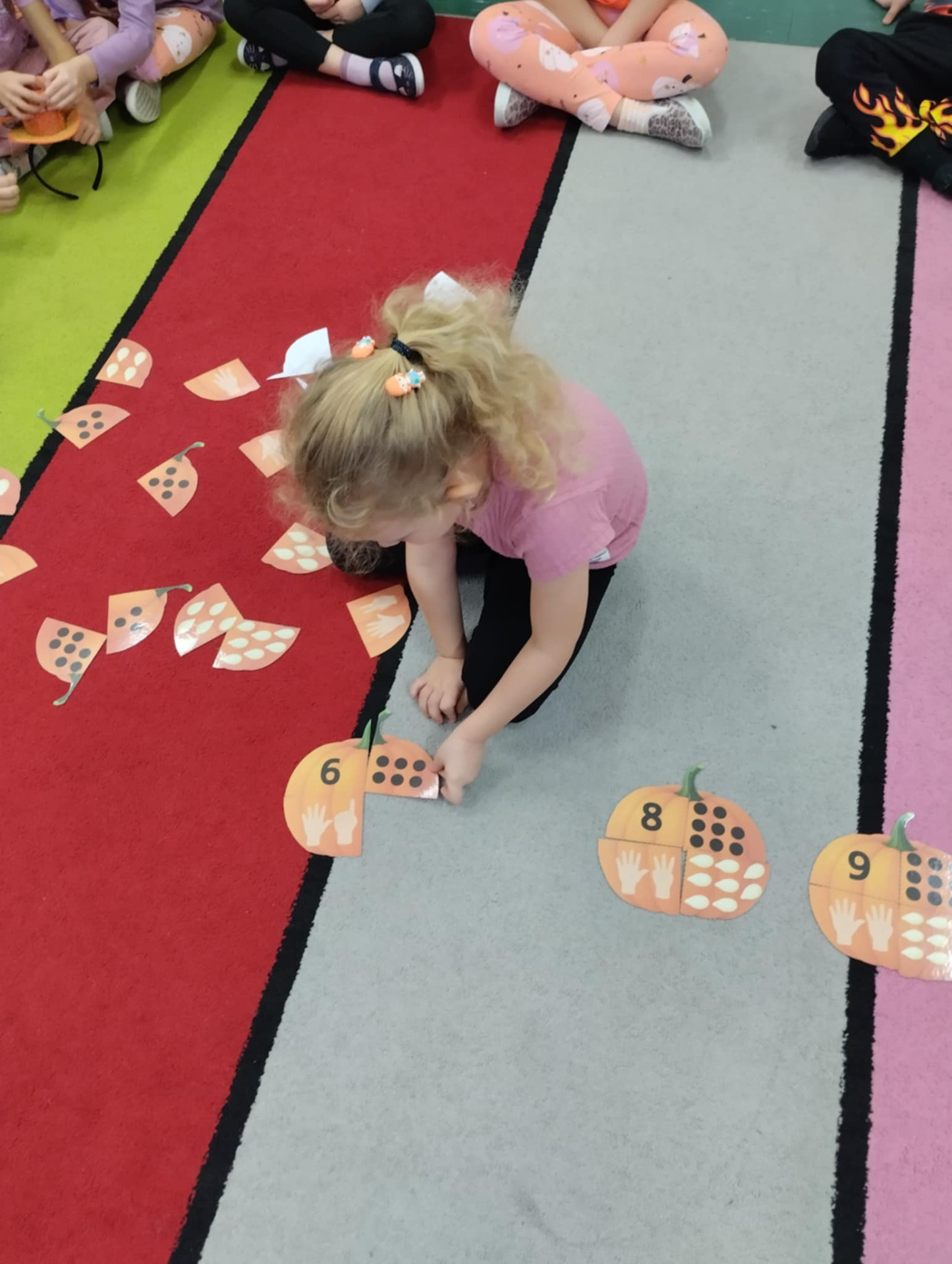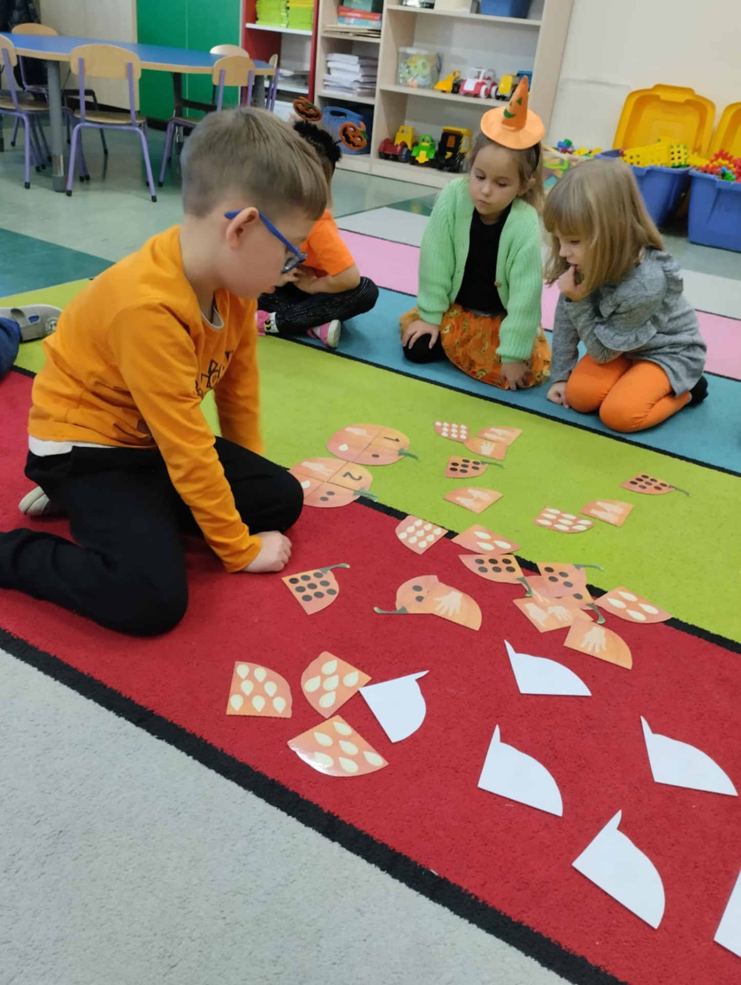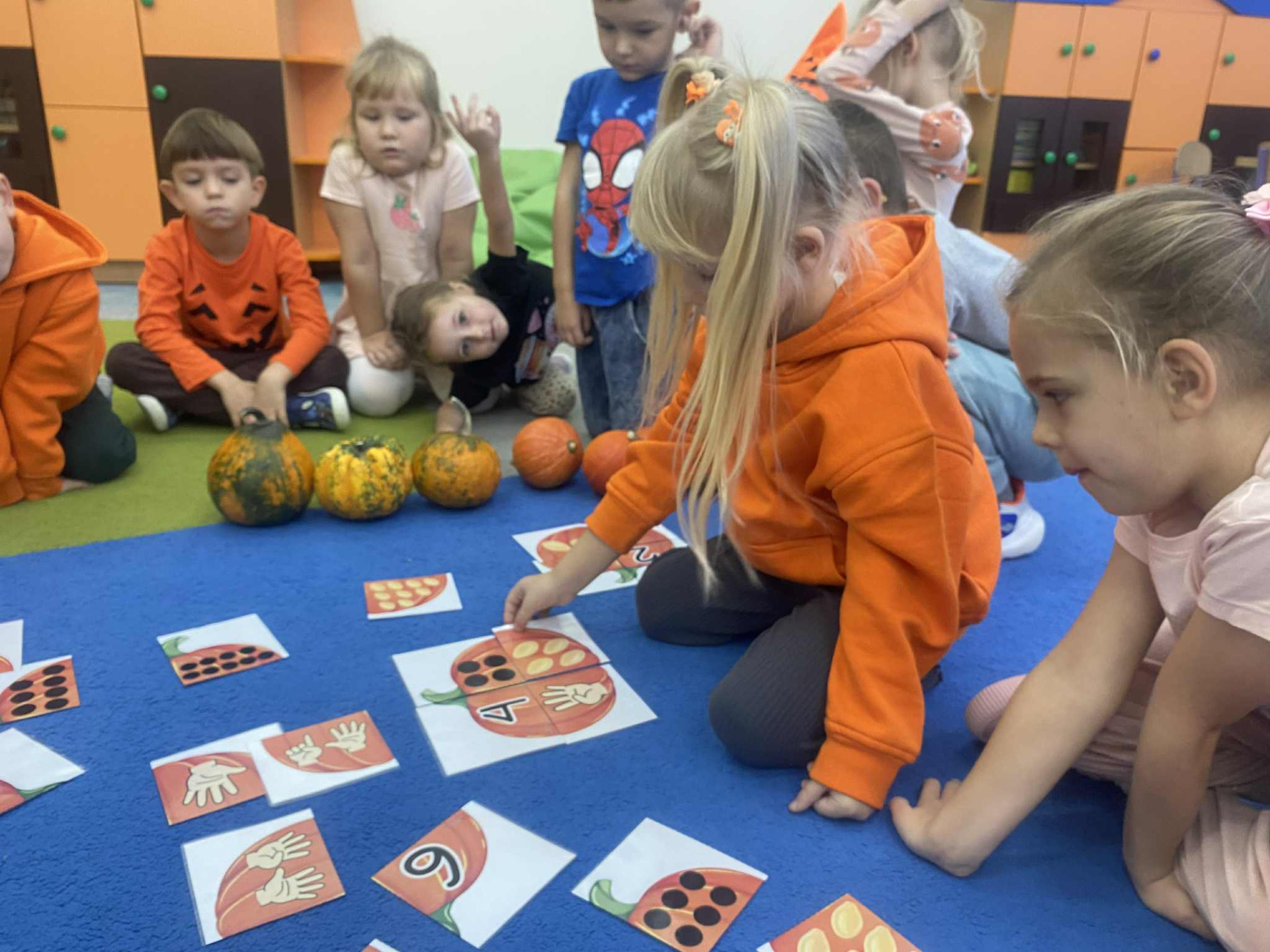 Na dzieci czekało wiele ciekawych zabaw i konkurencji, takich jak dyniowe kręgle, slalom dyniowy, dyniowe zawody, skoki przez dynię czy ziarnko do ziarnka. Nie zabrakło również twórczej pracy – mali artyści wykonali piękne, pomysłowe prace plastyczne inspirowane dynią.