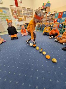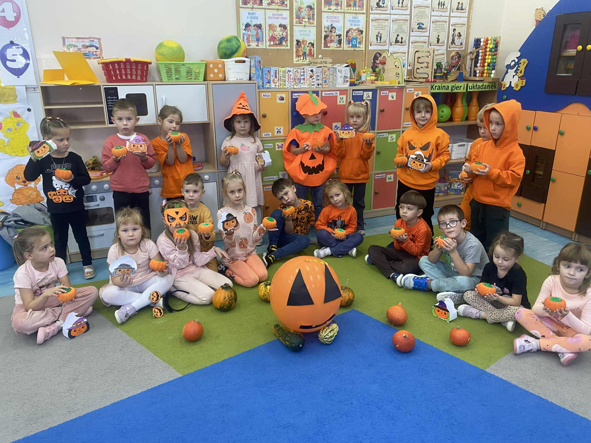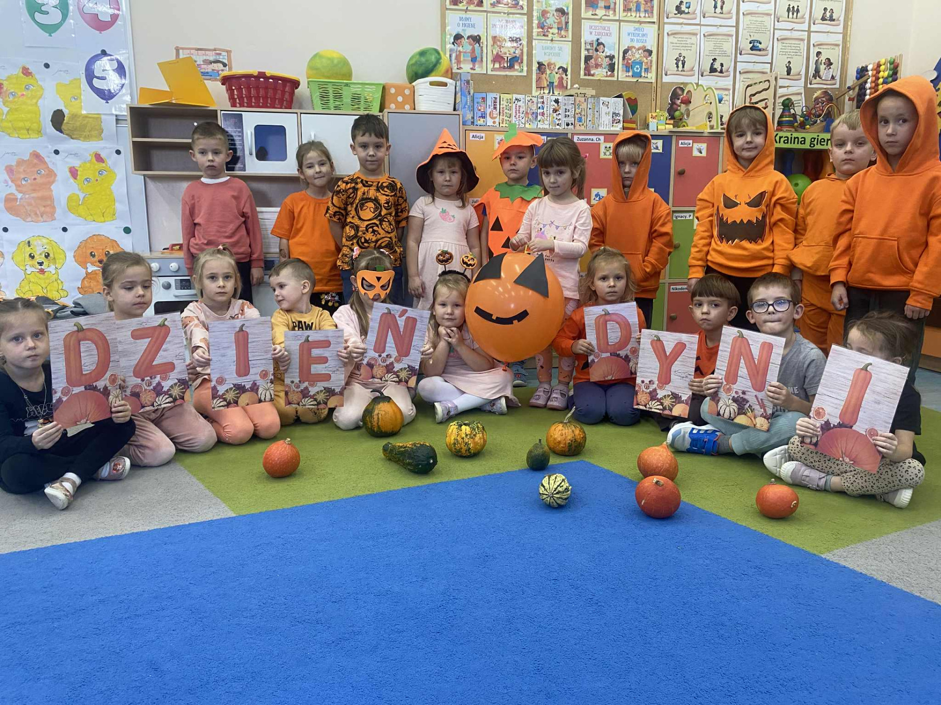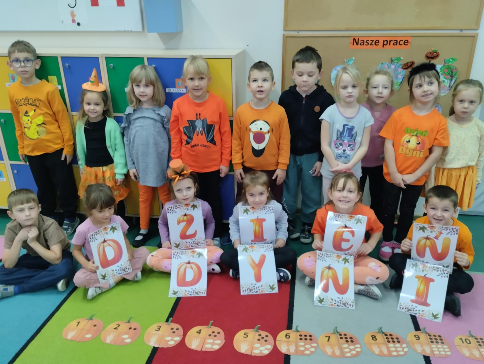31 października w naszym przedszkolu obchodziliśmy wyjątkowe święto – Dzień Dyni. Tego dnia dzieci przyszły ubrane na pomarańczowo, tworząc radosną, jesienną atmosferę. Podczas wspólnych zajęć poznaliśmy bliżej to niezwykłe i bardzo zdrowe warzywo – dynię, odkrywając jej różnorodne kształty, kolory i zastosowania.