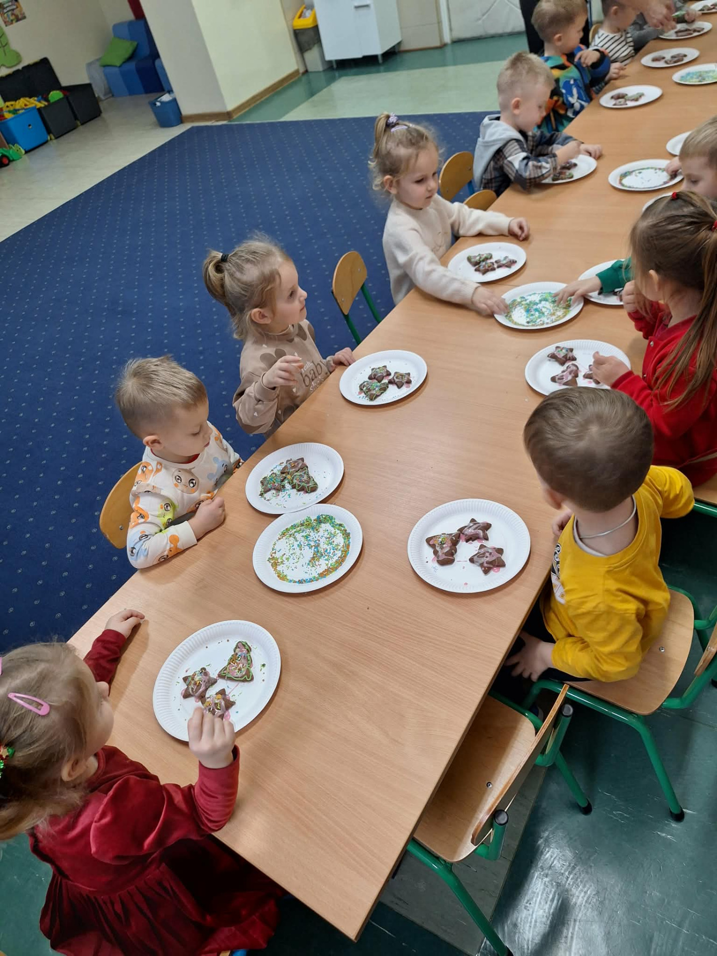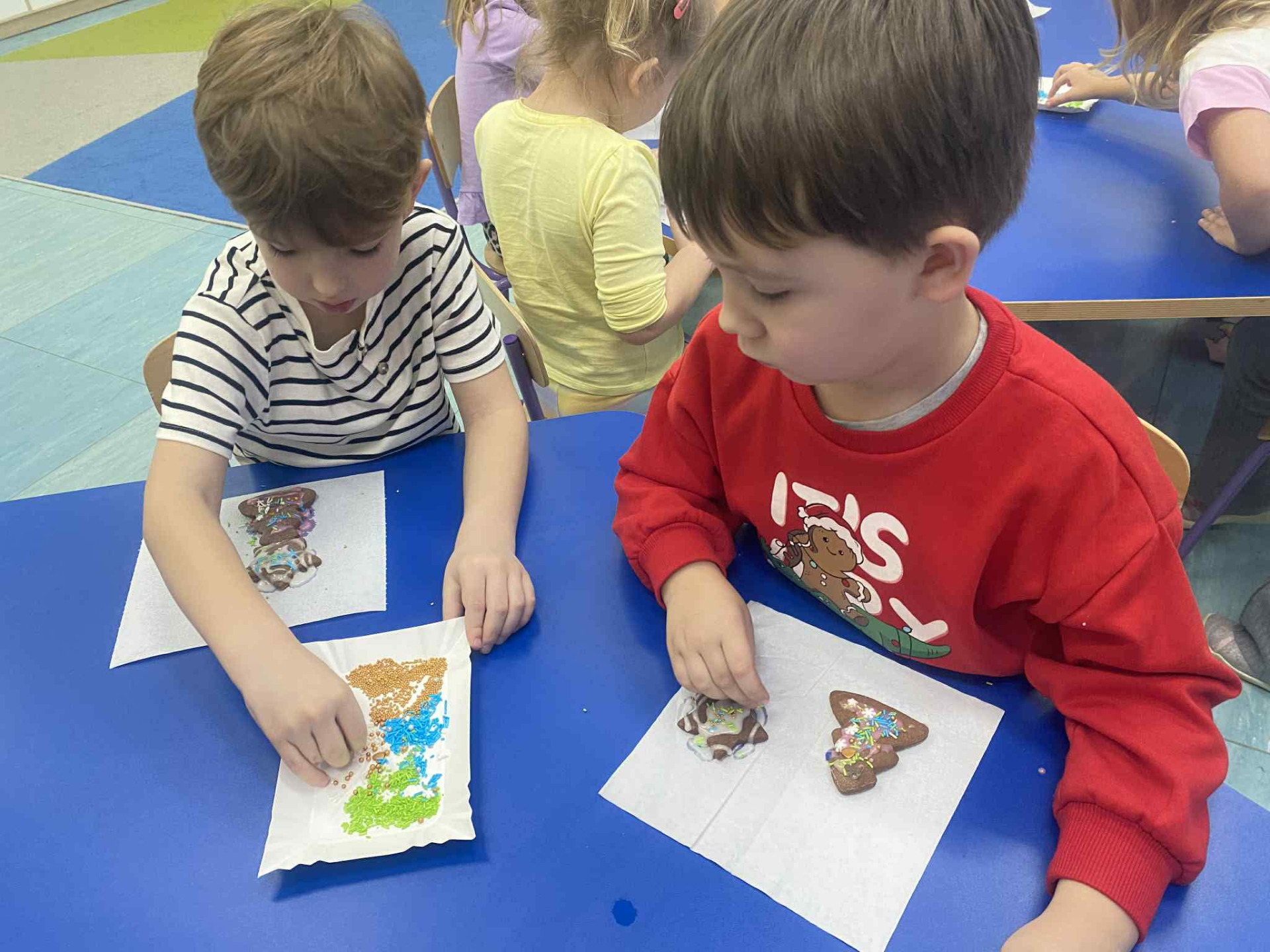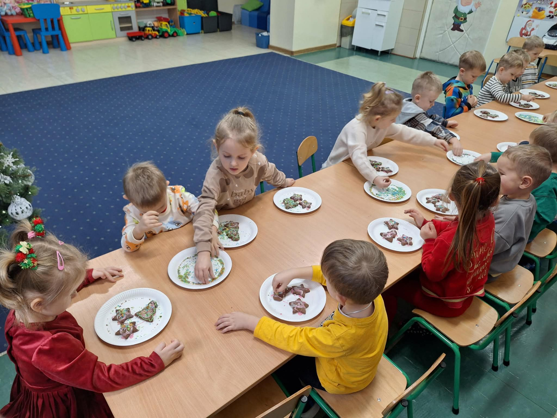Dekorowanie pierników to piękna świąteczna tradycja, która wprowadza dzieci w wyjątkowy, bożonarodzeniowy nastrój, a jednocześnie rozwija ich wyobraźnię, kreatywność oraz sprawność manualną. W przedszkolu ta radosna aktywność stała się wspaniałą okazją do połączenia zabawy z nauką i wspólnego spędzania czasu.