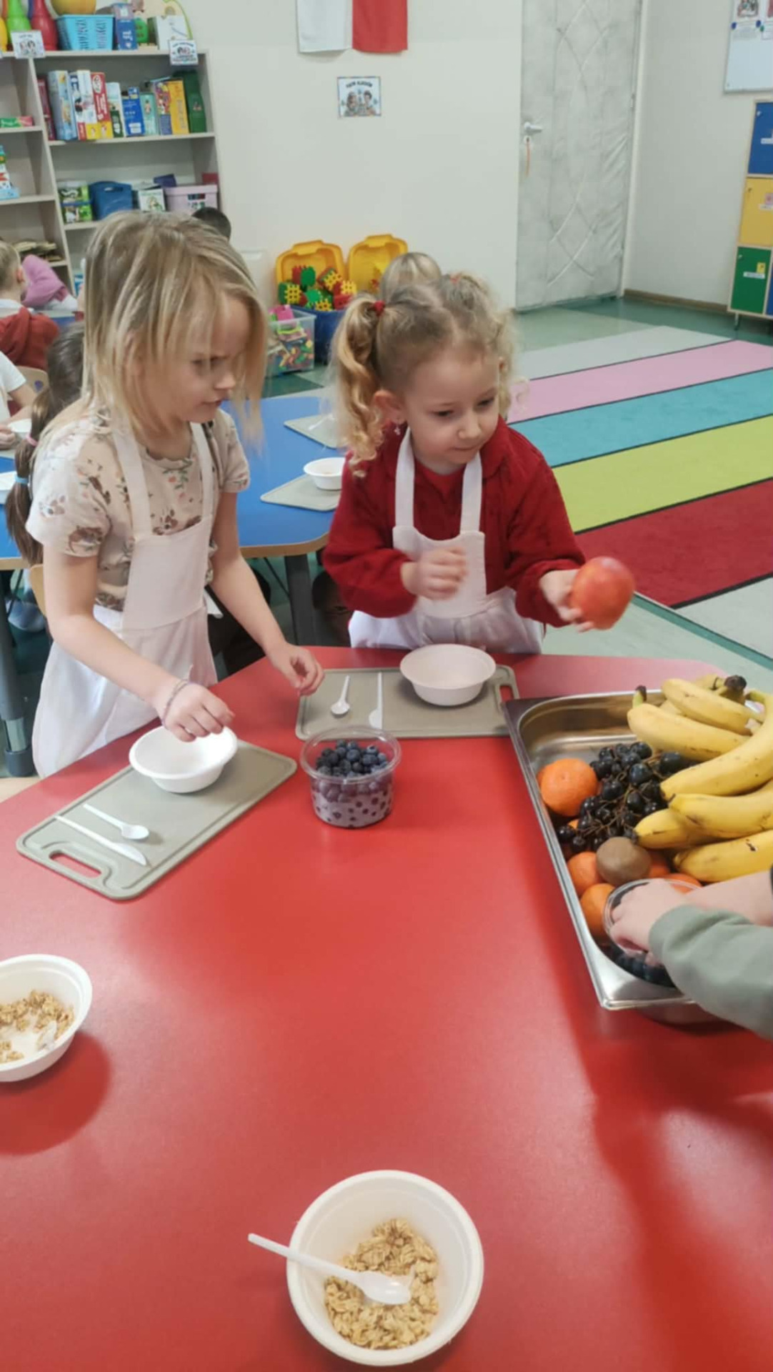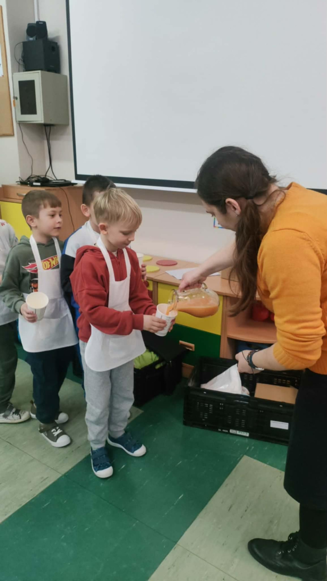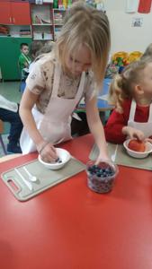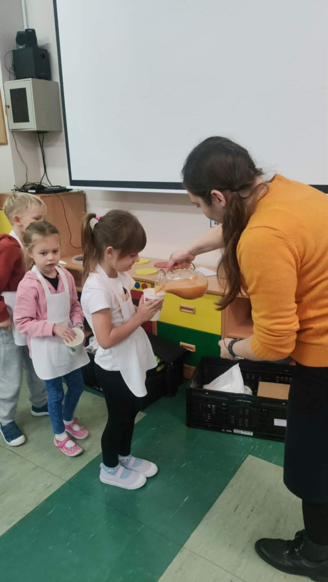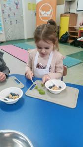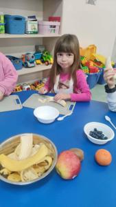 Podczas warsztatów przedszkolaki wyruszyły w edukacyjną podróż do krainy żywności, gdzie poznawały zdrowe produkty, w szczególności owoce i warzywa. Jednym z najciekawszych elementów zajęć było wspólne przygotowywanie zdrowych owoców oraz zdrowego soku owocowego, a następnie konsumowanie. Dzieci samodzielnie wybierały owoce, poznawały ich nazwy, kolory oraz wartości odżywcze, a następnie z dużym zaangażowaniem uczestniczyły w robieniu soku.