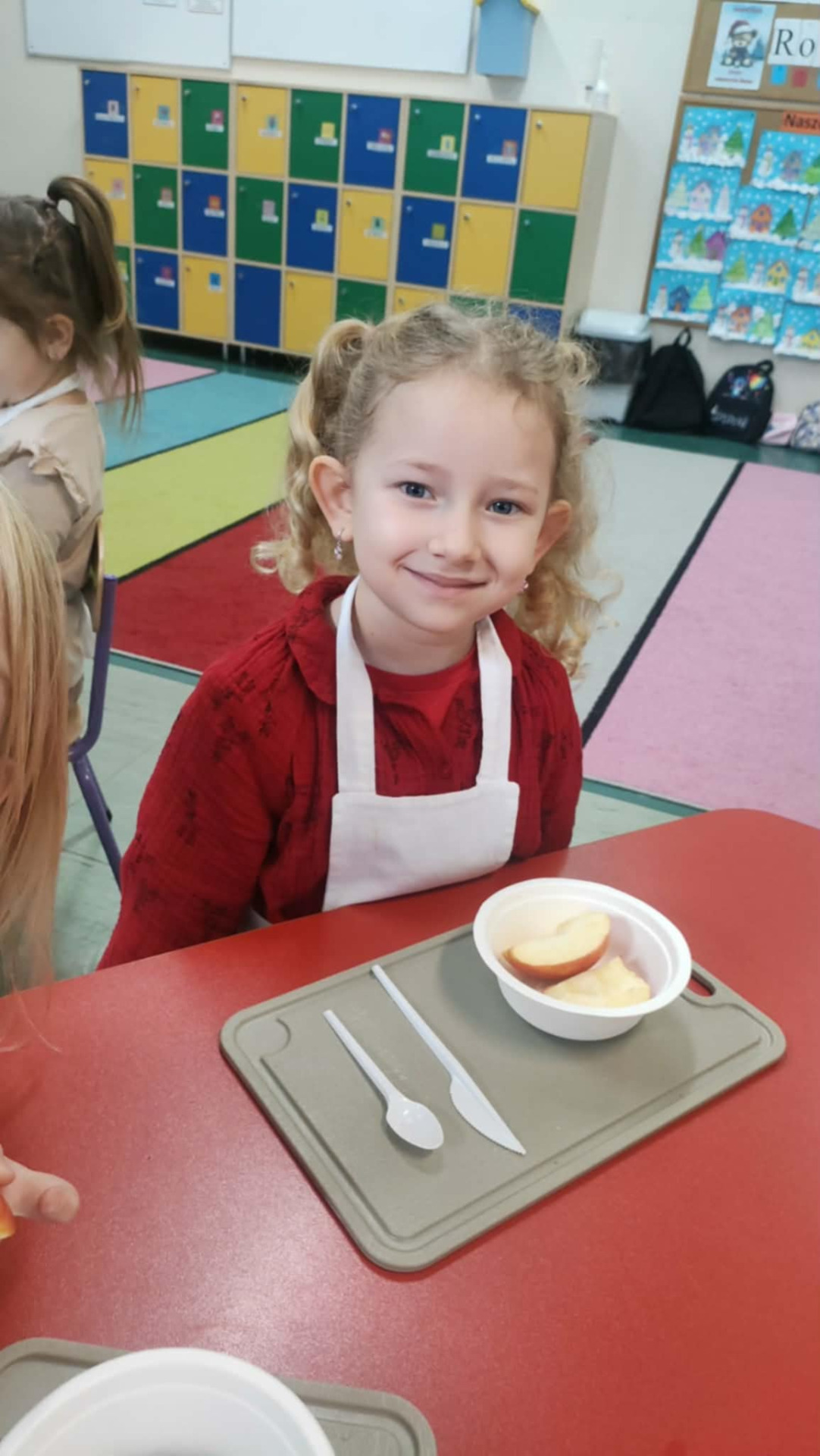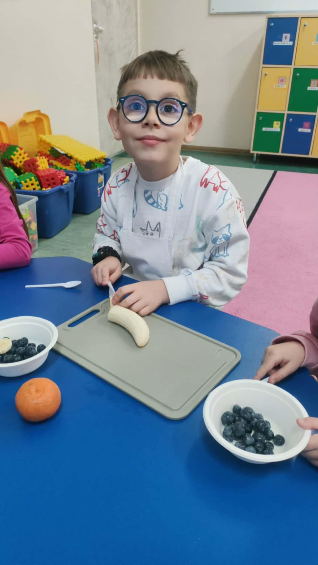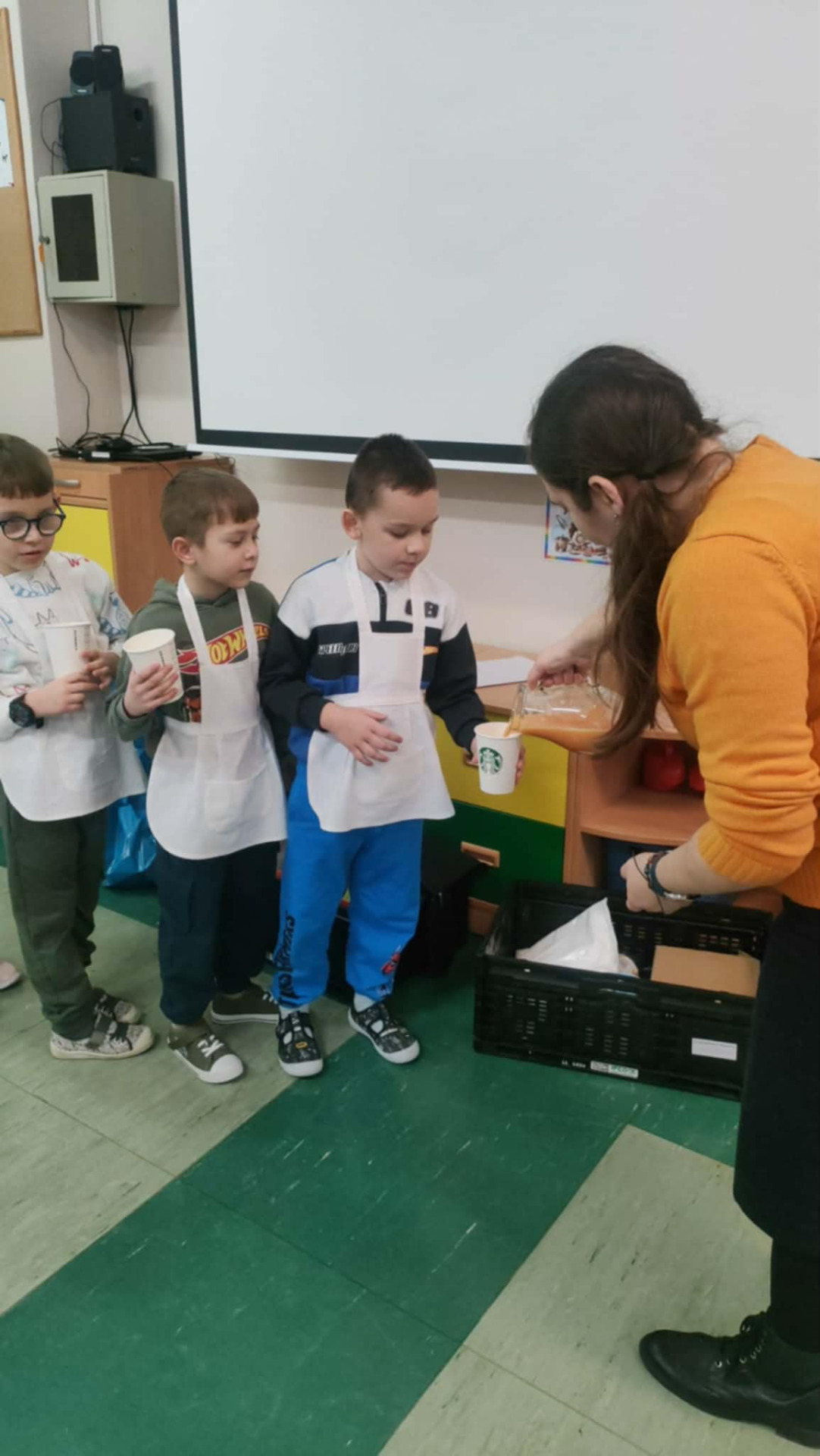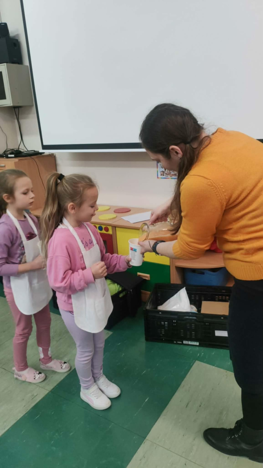 Podczas warsztatów przedszkolaki wyruszyły w edukacyjną podróż do krainy żywności, gdzie poznawały zdrowe produkty, w szczególności owoce i warzywa. Jednym z najciekawszych elementów zajęć było wspólne przygotowywanie zdrowych owoców oraz zdrowego soku owocowego, a następnie konsumowanie. Dzieci samodzielnie wybierały owoce, poznawały ich nazwy, kolory oraz wartości odżywcze, a następnie z dużym zaangażowaniem uczestniczyły w robieniu soku.