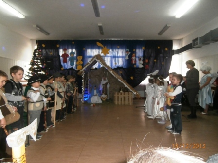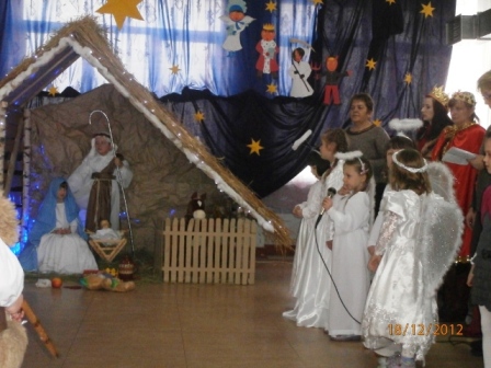 W dniu 20.12.2012r. w Przedszkolu Publicznym w Złotnikach odbyło się Spotkanie Wigilijne z udziałem rodziców, Dyrekcji i ks. Proboszcza. Zostały wystawione Jasełka bożonarodzeniowe przedstawiające fragment historii biblijnej ukazanej w Piśmie Św. i tradycji chrześcijańskiej. Całość przeplatana była śpiewem zbiorowym i solo kolęd i pastorałek. Role Świętej Rodziny, pasterzy i aniołków odgrywały dzieci, natomiast Trzech Króli, Heroda, Diabła, śmierci, Anioła, babci, kobiet, narratora – rodzice. Po występach wszyscy zasiedliśmy do wieczerzy wigilijnej.